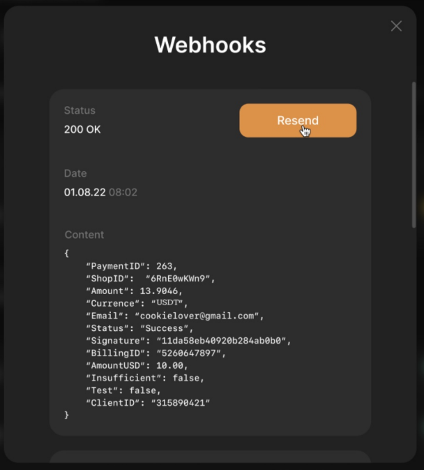 In case if Merchant will not validate callback System repeats it 31 times with an interval of 15 seconds. If Webhook still fails to be delivered, System sends notification to the Merchant's email indicating a problem with Webhook URL.